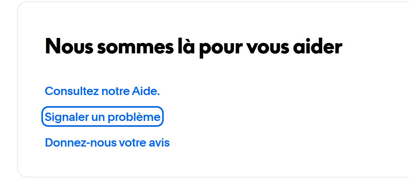 Ensuite, allez sur Signaler un problème (un peu plus bas):