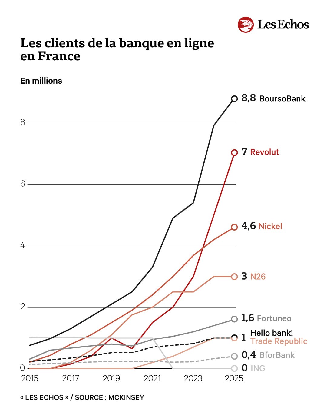 Revolut et BoursoBank ont dépassé les géants bancaires dans la course aux nouveaux clients mais attention, énormément de gens ont ouvert des comptes dans les banques en ligne tout en gardant leur compte dans une banque classique.