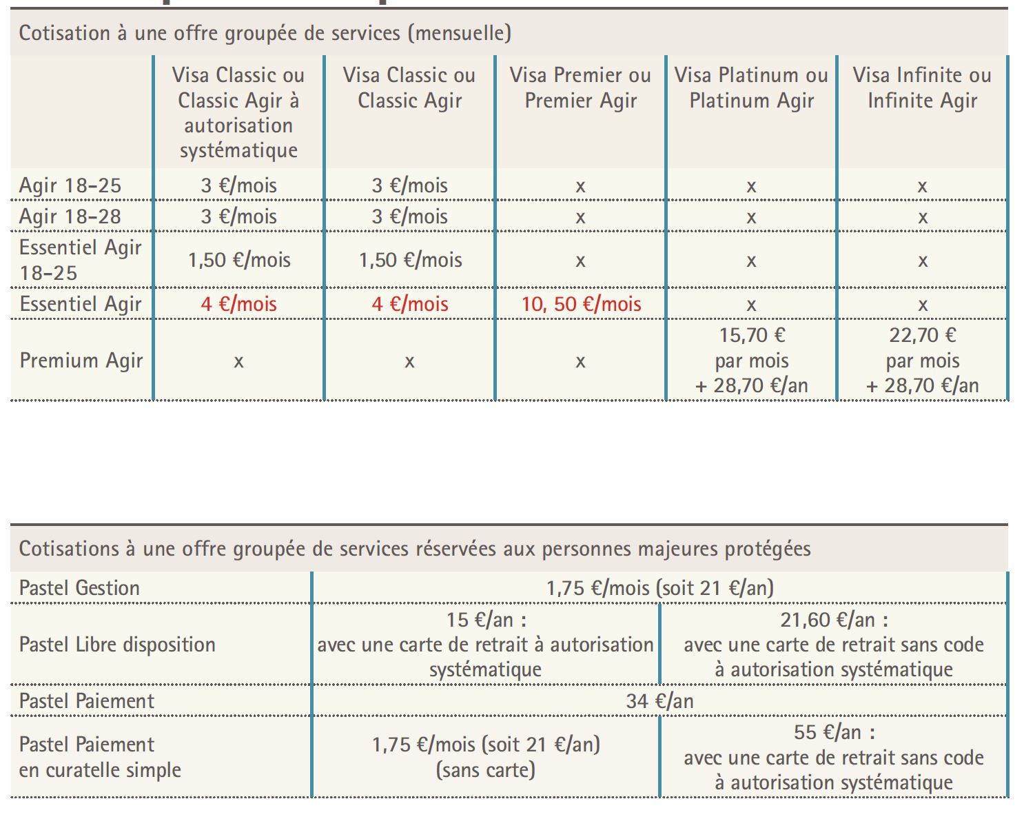 - Carte de retrait Visa+ à autorisation systématique à destination des personnes protégées: 15 € par an