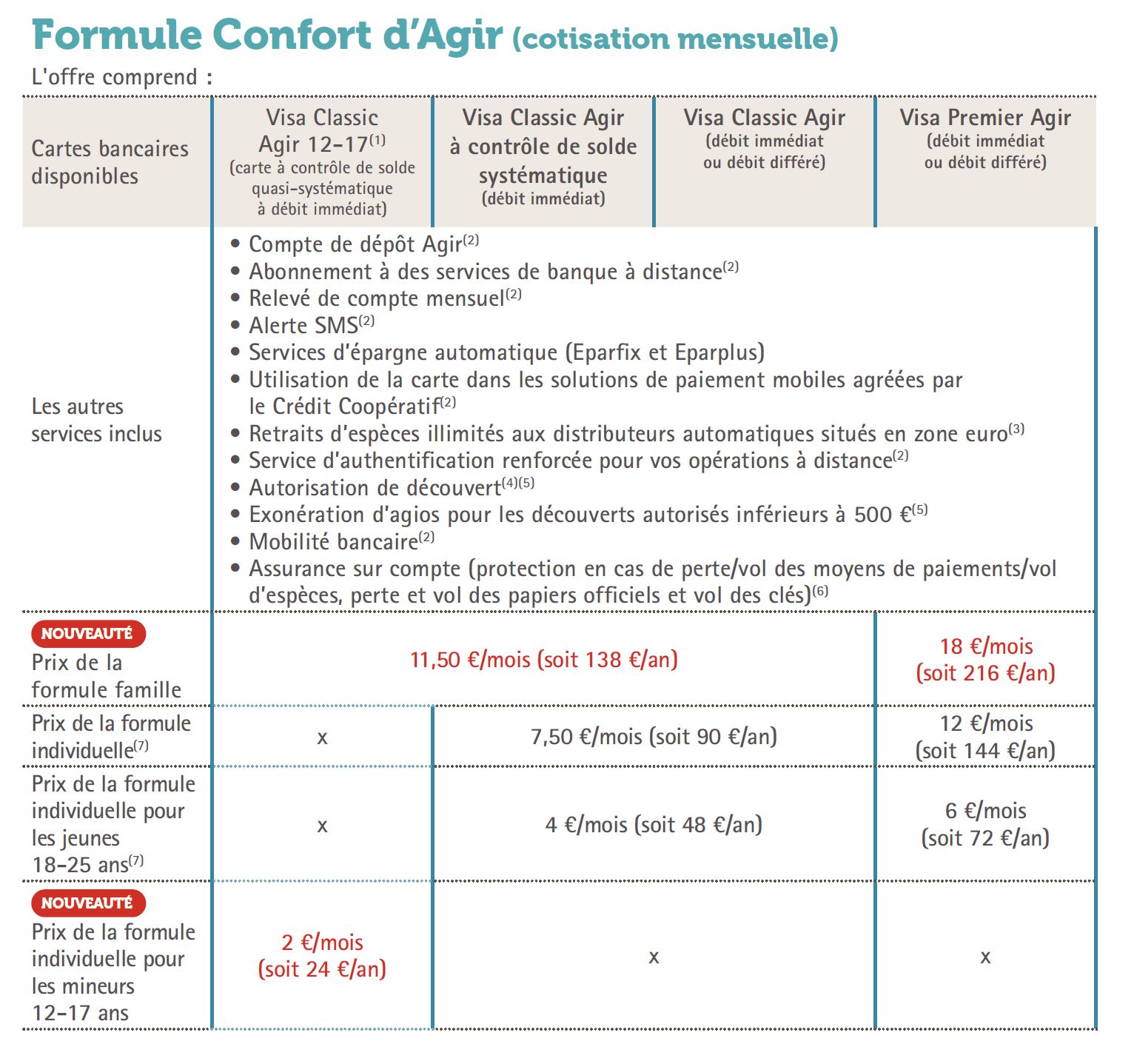 Les offres bancaires du Crédit Coopératif sont les formules AGIR avec la SIMPLE, la CONFORT et la LIBRE